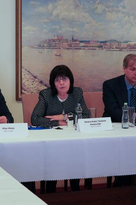 The project aims to deliver an action plan including two chapters: one on the governance solution for managing the cross-border functional area of Bratislava (including its Austrian and Hungarian partner municipalities); and another identifying the most important topics of cooperation. The mayors of the Hungarian municipalities (Mr Vince Kiss from Rajka, Mrs Andor Tamásné Kovács from Dunakiliti, Ms Erika Márkus from Bezenye, Mr Krisztián Mogyorósi from Feketeerdő, Mr Béla Husvéth from Dunasziget, and Mr László Szőke from Hegyeshalom) mentioned several challenges and problems they face due to the phenomenon of cross-border residential mobility. As they underlined, these problems cannot be tackled at the local or regional level as they require the involvement of the national authorities. At the same time, without a permanent platform of exchanges, the management of the cross-border agglomerating zone is unfeasible. During a lively debate, the Hungarian delegation had the opportunity to get a detailed overview of the Slovak-Austrian cooperation model which can be adapted to the Slovak-Hungarian context.